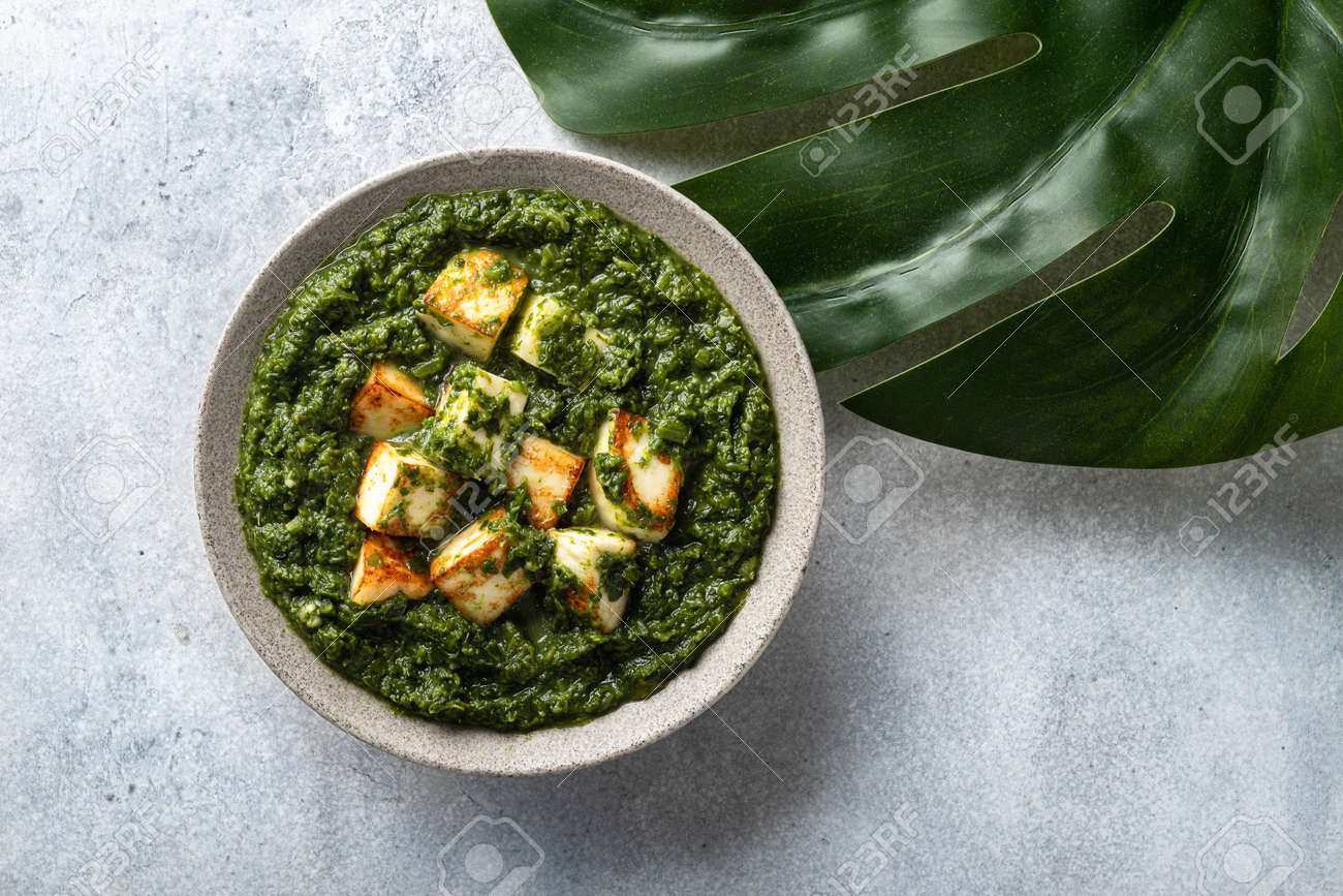 Palak Paneer Indian Traditional Food On Concrete Background Top View Stock Photo Picture And Royalty Free Image Image 165349232
